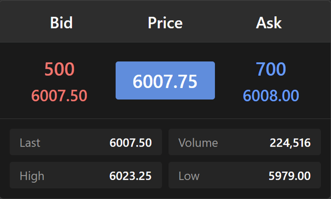 This snapshot tells you the market is slightly bullish (trading above the bid), has good liquidity based on volume, and shows modest positive momentum for the session. Clealry, this is just one signal and not indicative of immediate direction.